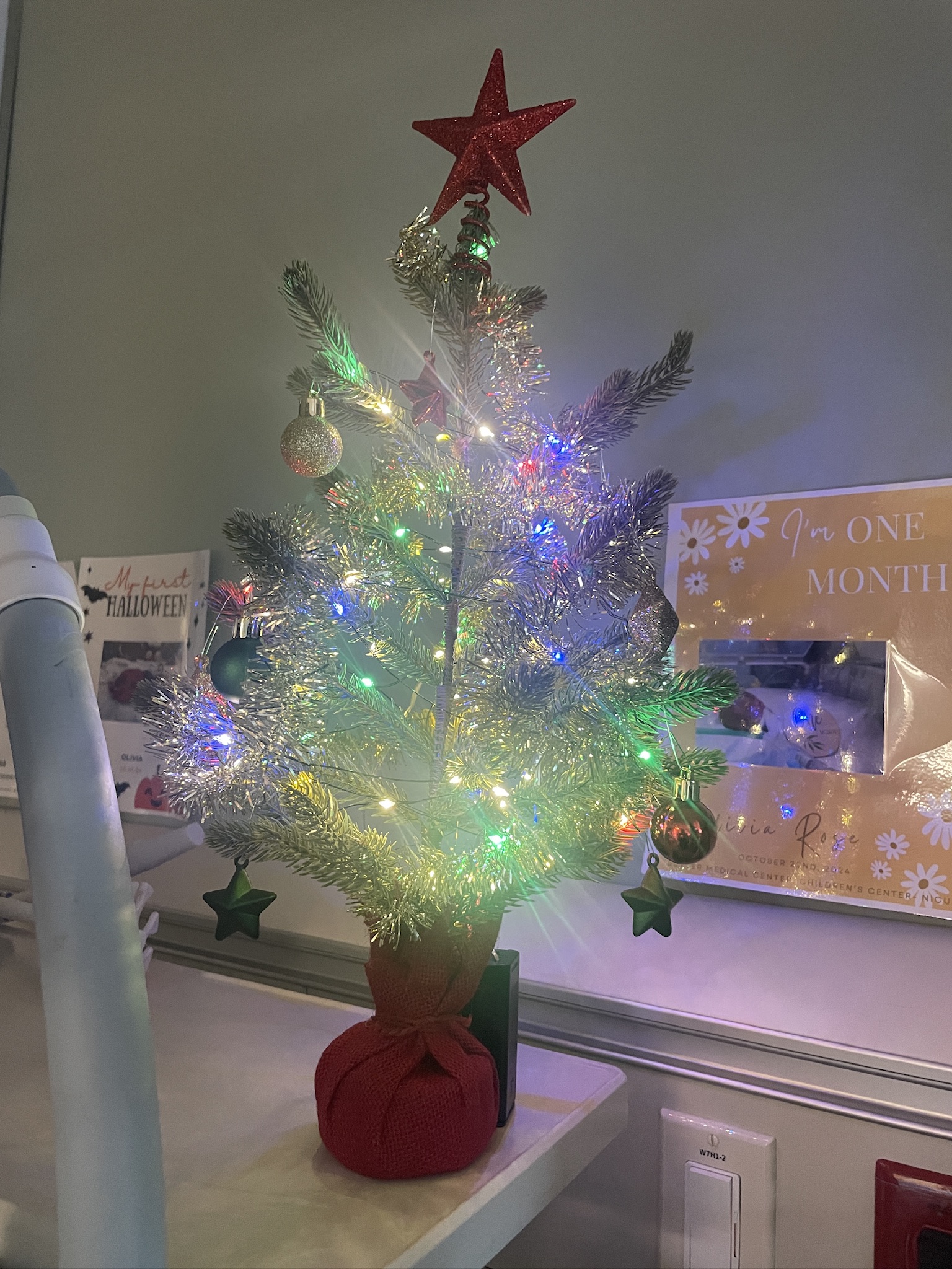 - And…she got her first Christmas tree. Everyone who comes in her pod loves it 🙂