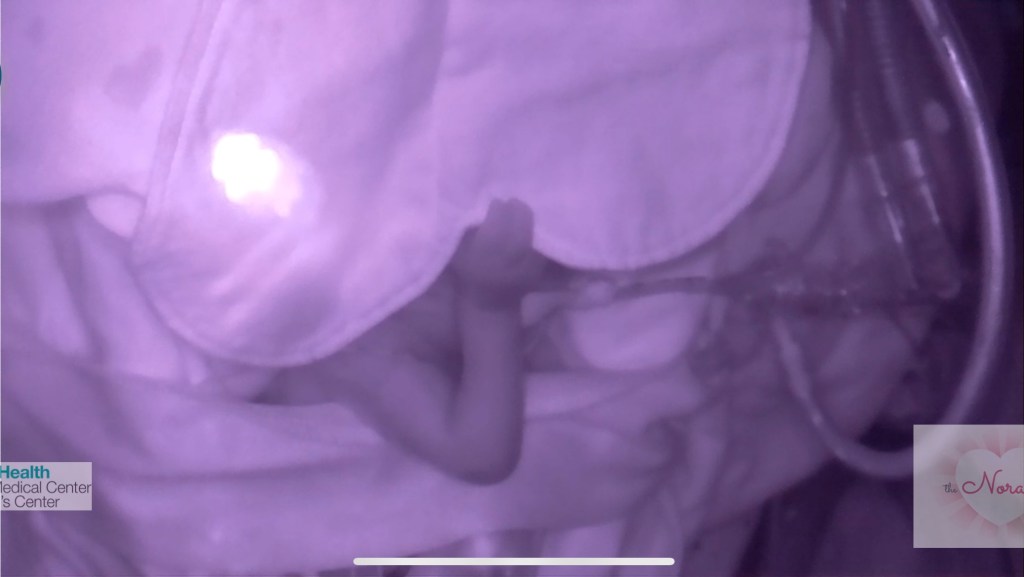 First is the fabric scent hearts. When babies have to go to the NICU, moms and babies do not get to take advantage of the “golden hour” of bonding immediately. For me, it was such a disappointment. I had an idea of what that time would look like and it was torn from me. And to add to it, not only could I not hold Olivia right away, sometimes we couldn’t even touch her because the stimulation can be too much for little babies. So, at the NICU, what they do to help with bonding are fabric hearts. So, I take a fabric heart that they provide (a volunteer makes them) and place it in my bra, so it picks up my scent. Then when I get to the NICU I am able to place it in Olivia’s bed. Most times the nurses use it to cover Olivia’s eyes when it is bright in the room so it can help her fall asleep better. With it being so close, she is able to smell my scent, so when I am able to hold her, there is that connection. And she can smell and connect with me when I am not there. Below is photo a while back of Olivia holding the heart. Her little hand. So cute.