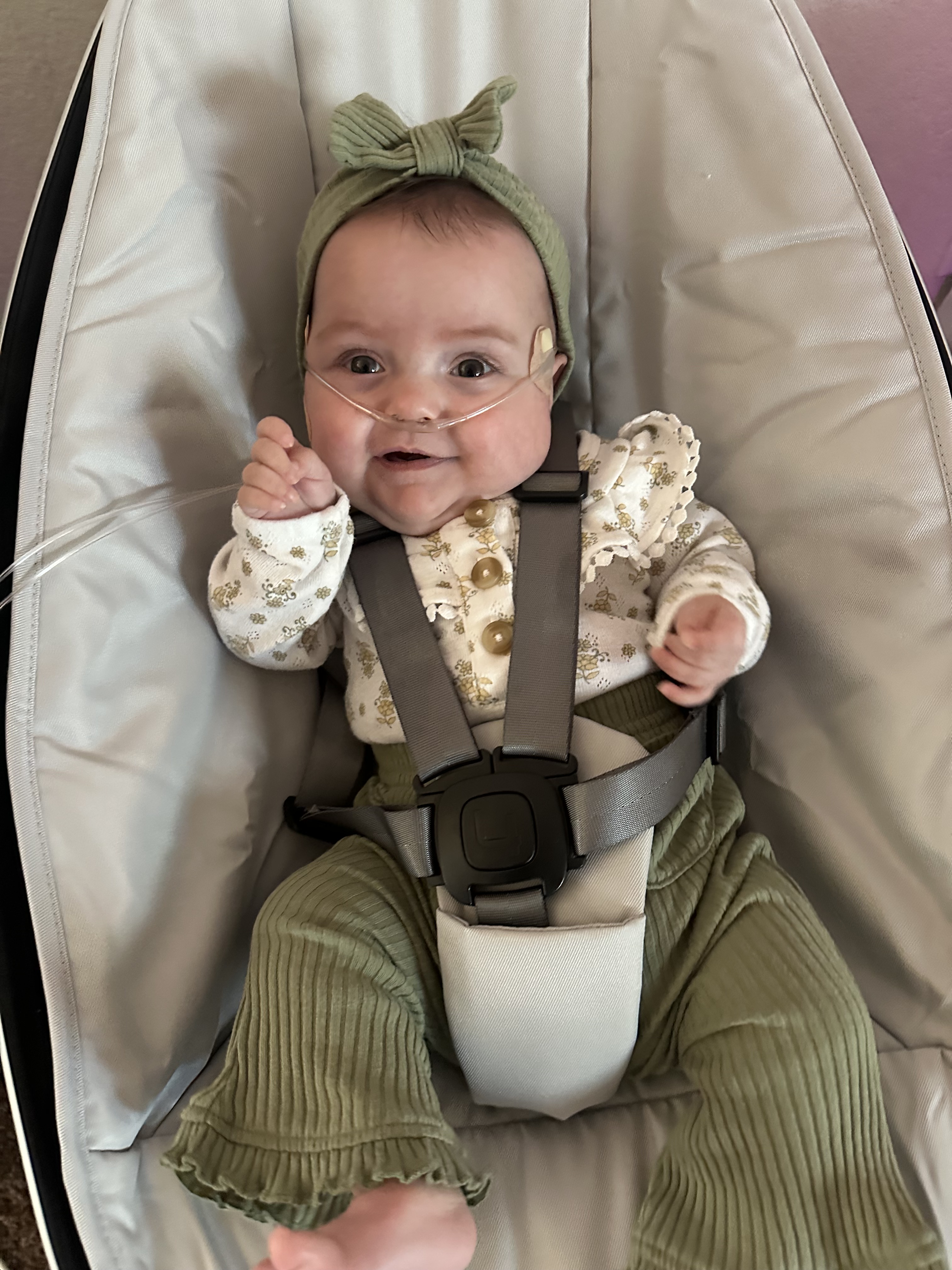 Her pulmonology appointment went well on the 26th also. We weaned Olivia down to .5 liters. She has been a rock star. Instead of weaning Olivia down more on oxygen, we are beginning to do “sprints” of taking her off the oxygen. So, we will keep her off her oxygen for periods of time to have her get use to it and build her stamina. We are very excited for this step. We see the pulmonologist again tomorrow. We are hoping we can maybe cut her meds. The breathing treatment is not so bad, but unfortunately we cannot find a compound pharmacy that takes our insurance and the sodium chloride is $65 every two weeks. She has to stay on that as long as she is taking any diuretics. We would like to not have to pay that if we can help it.