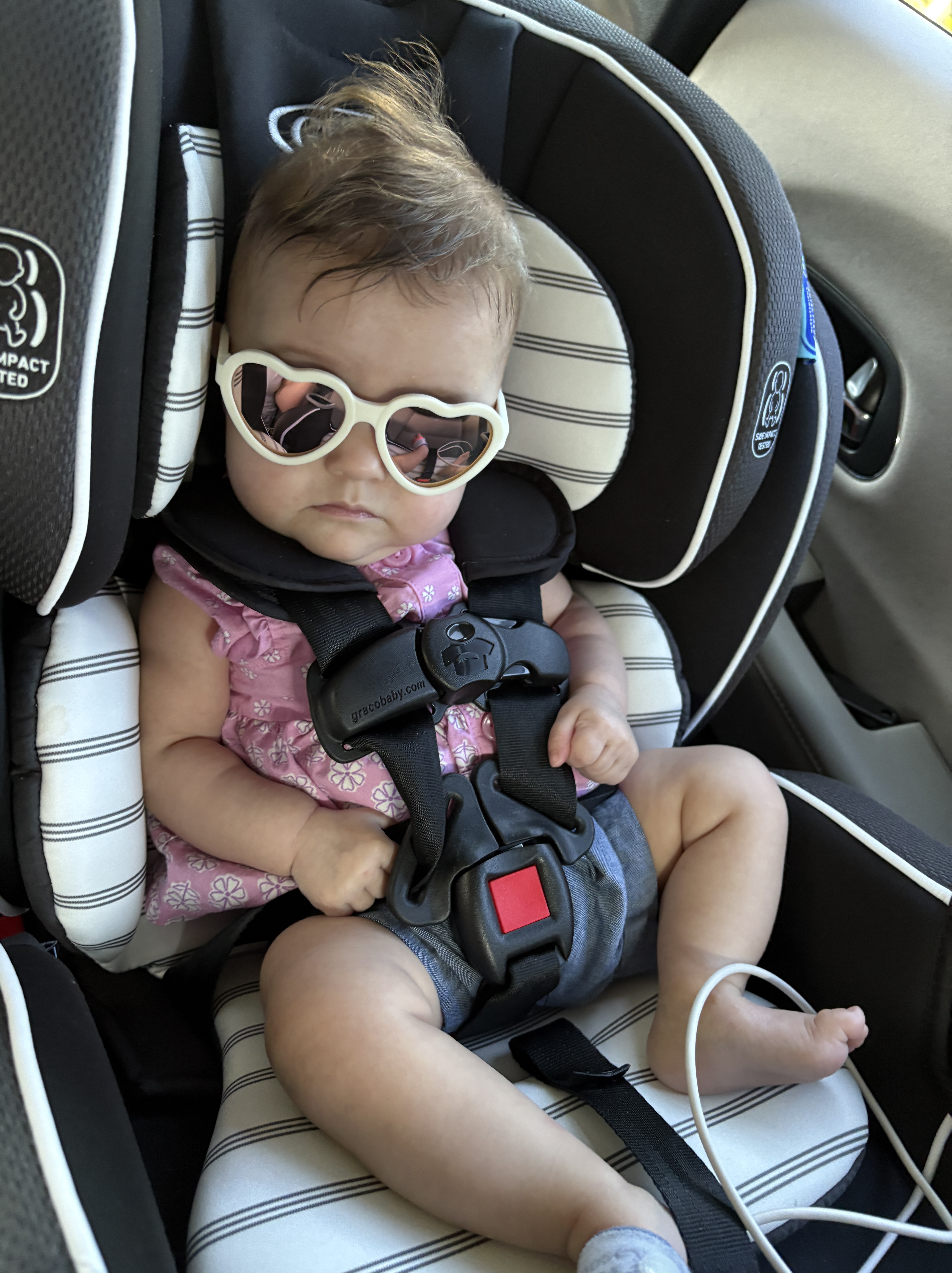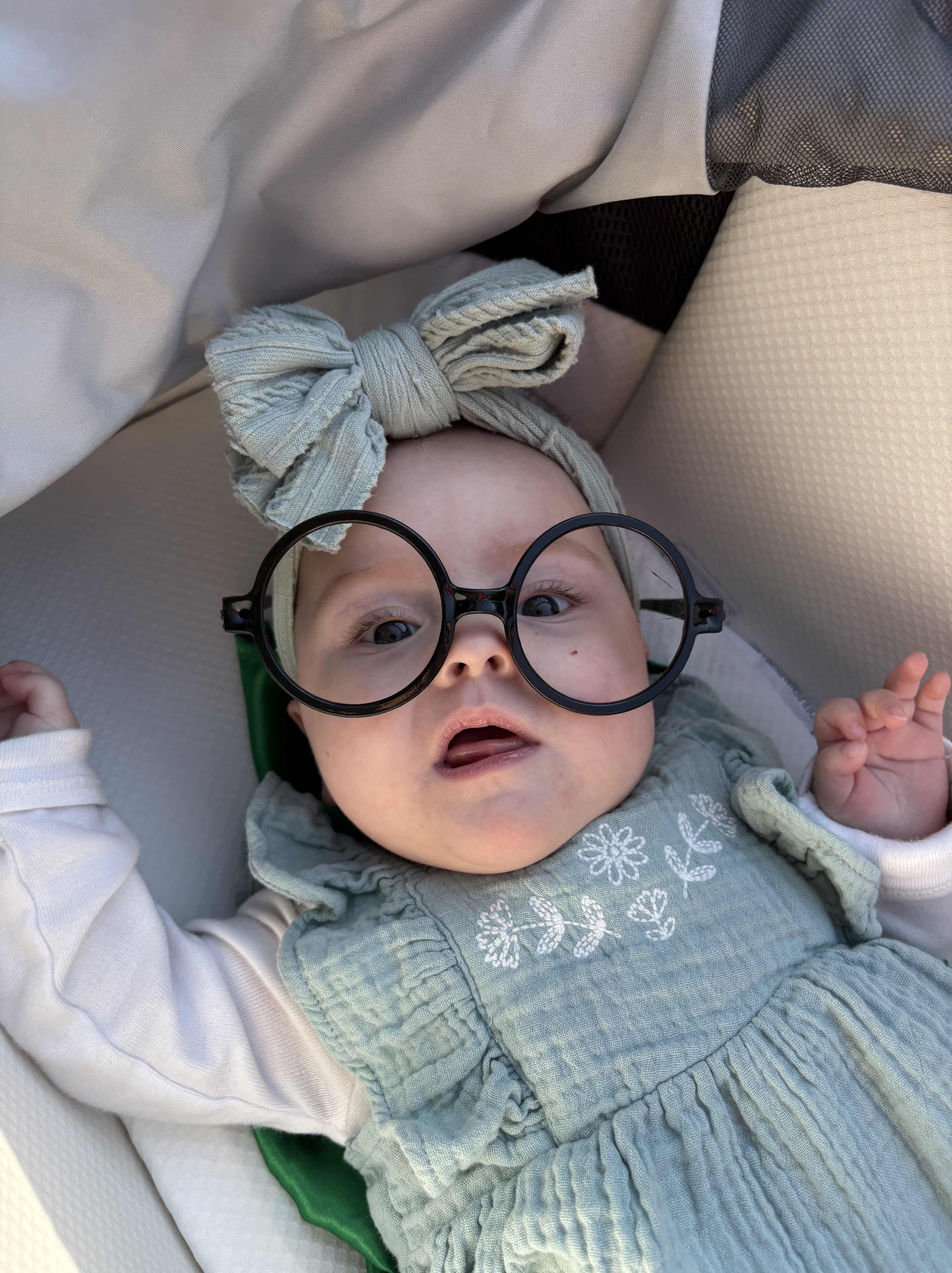 Oxygen! Olivia is off of oxygen for the most part. She mainly only needs it when we are driving in the car. Hoping that by our appointment at the end of the month she will be done completely! She is our little miracle that blows us away every day with her progress. Here is pic of our little Mob Boss.