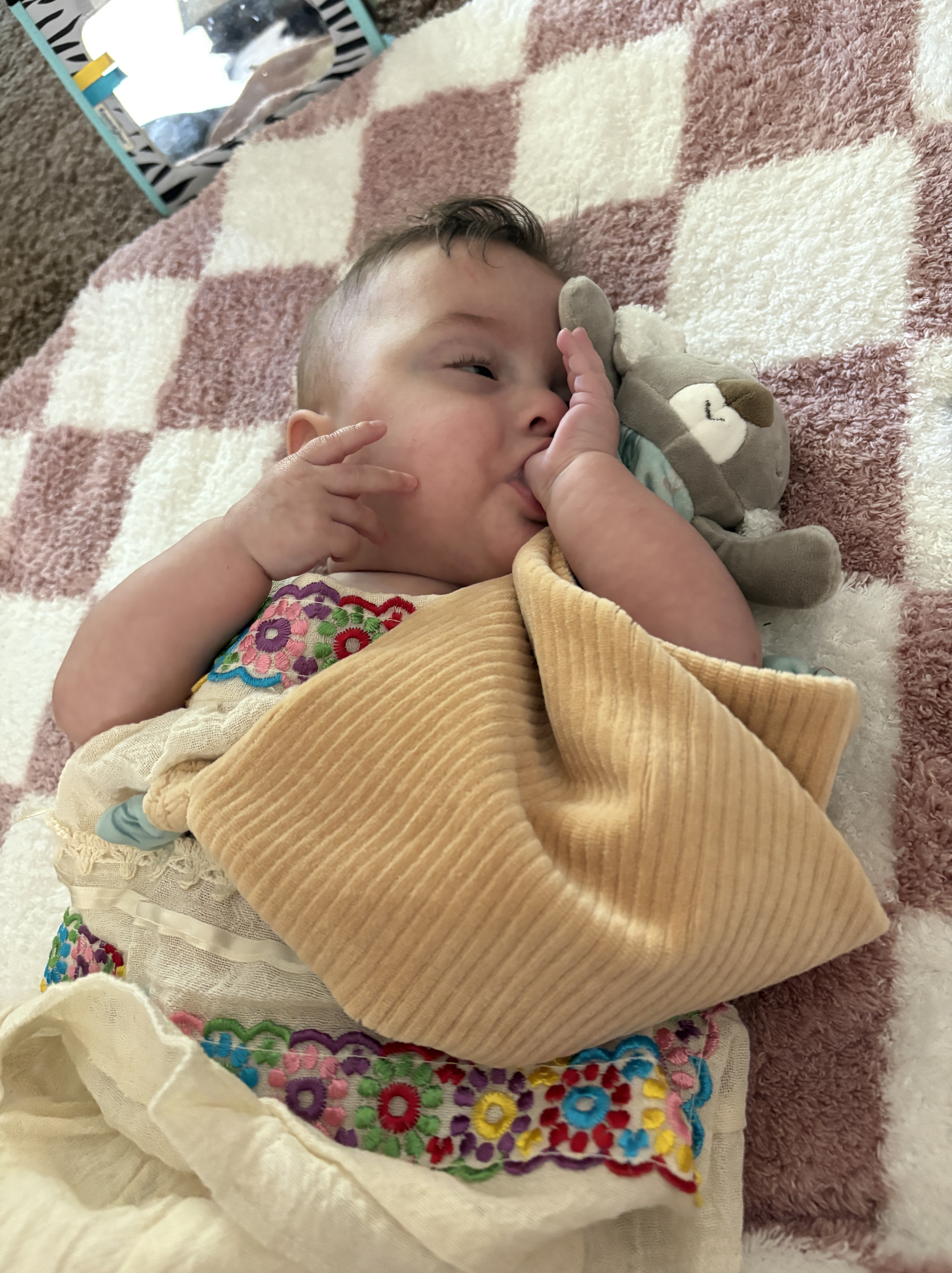 - Head: 39 cm (45th percentile) – have not measured again