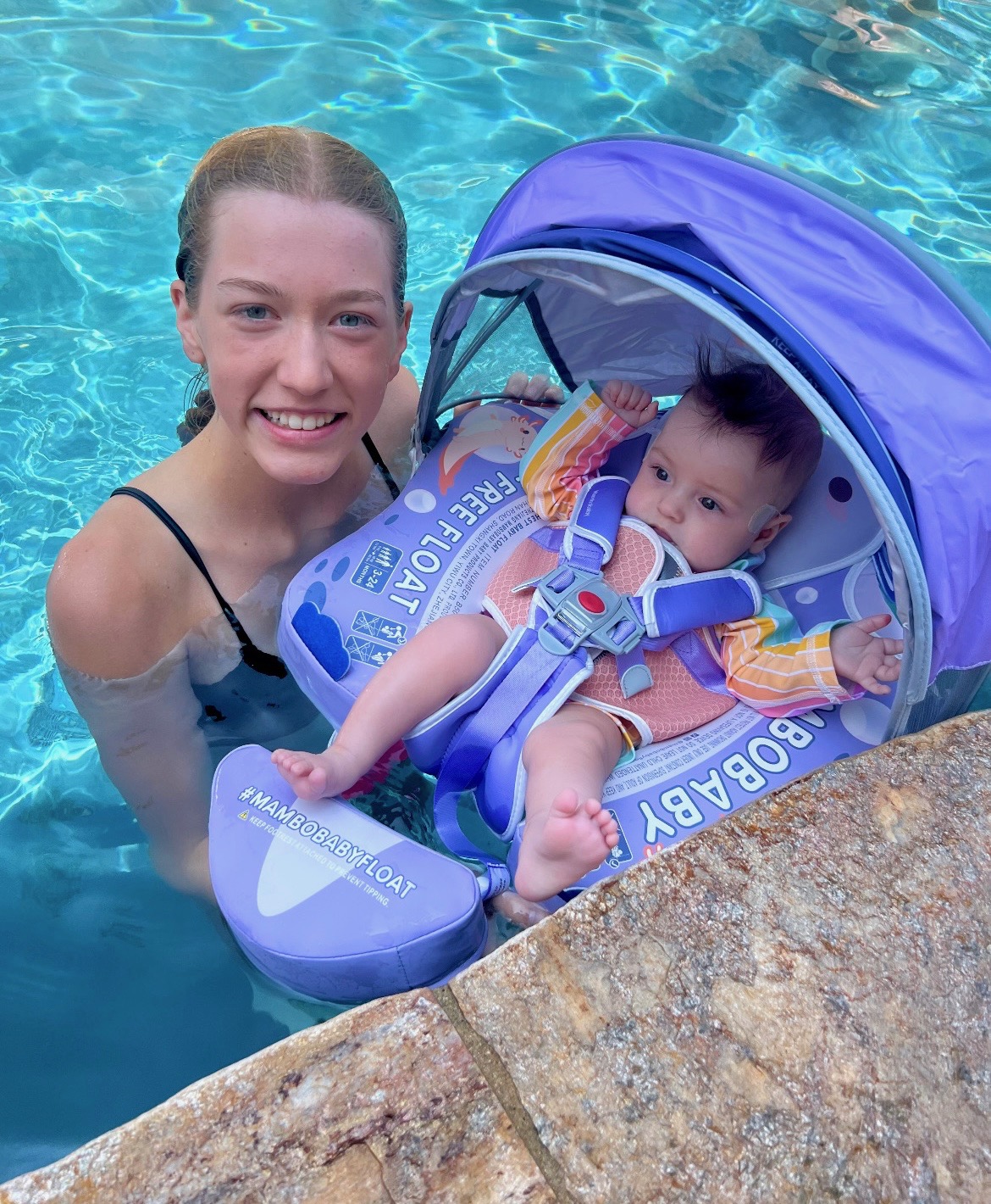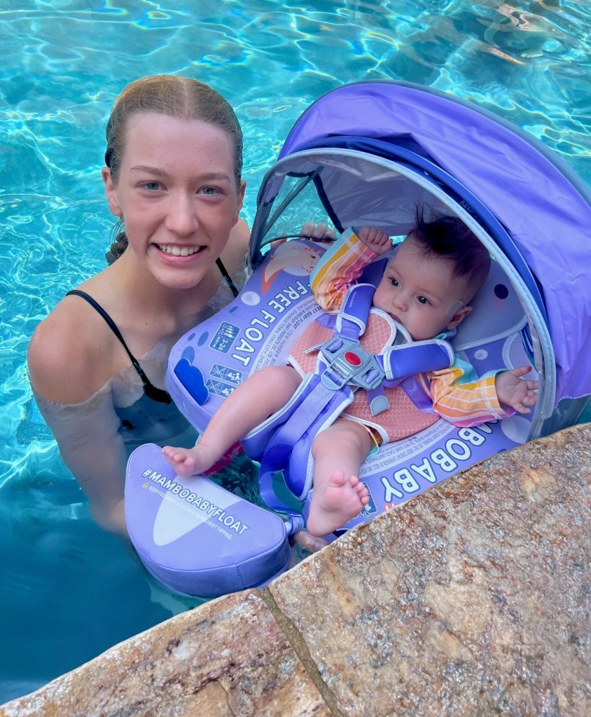 And so far in June she has had her first pool days, the picture below is with our niece Reese: