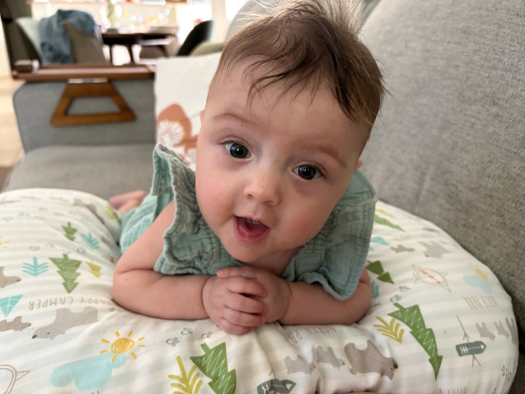• She can hold herself up well during tummy time and we are working on her extending her arms.