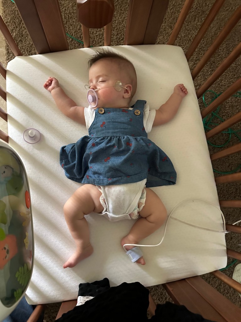 Eating has still been a challenge. We believe Olivia has bottle aversion, which is very common in preemies. And I did not make it better. It’s drilled into your head how much she should be eating and then you end up trying to force her to eat to try and get to the number. So, it makes sense that she would get bottle aversion. Who wants to be forced to eat. We have been trying a method I was referred to by another micro-preemie mom. It has been going better for Olivia to not fight every feeding, but we haven’t really been able to increase on quantity. Trying not to stress about it, which is sometimes easier said than done. We don’t always hit our minimum, but we watch her diapers to make sure she is hydrated. In the last blog, I mentioned that Olivia was having an appointment with Outpatient Pulmonology and going to see a dietician there. They decided to up her caloric intake on her formula to 24 calories per ounce. This has been effective because in her initial three months of being home she gained around a pound, but in the last month she gained 13 oz, so I would say we are moving in the right direction 🙂