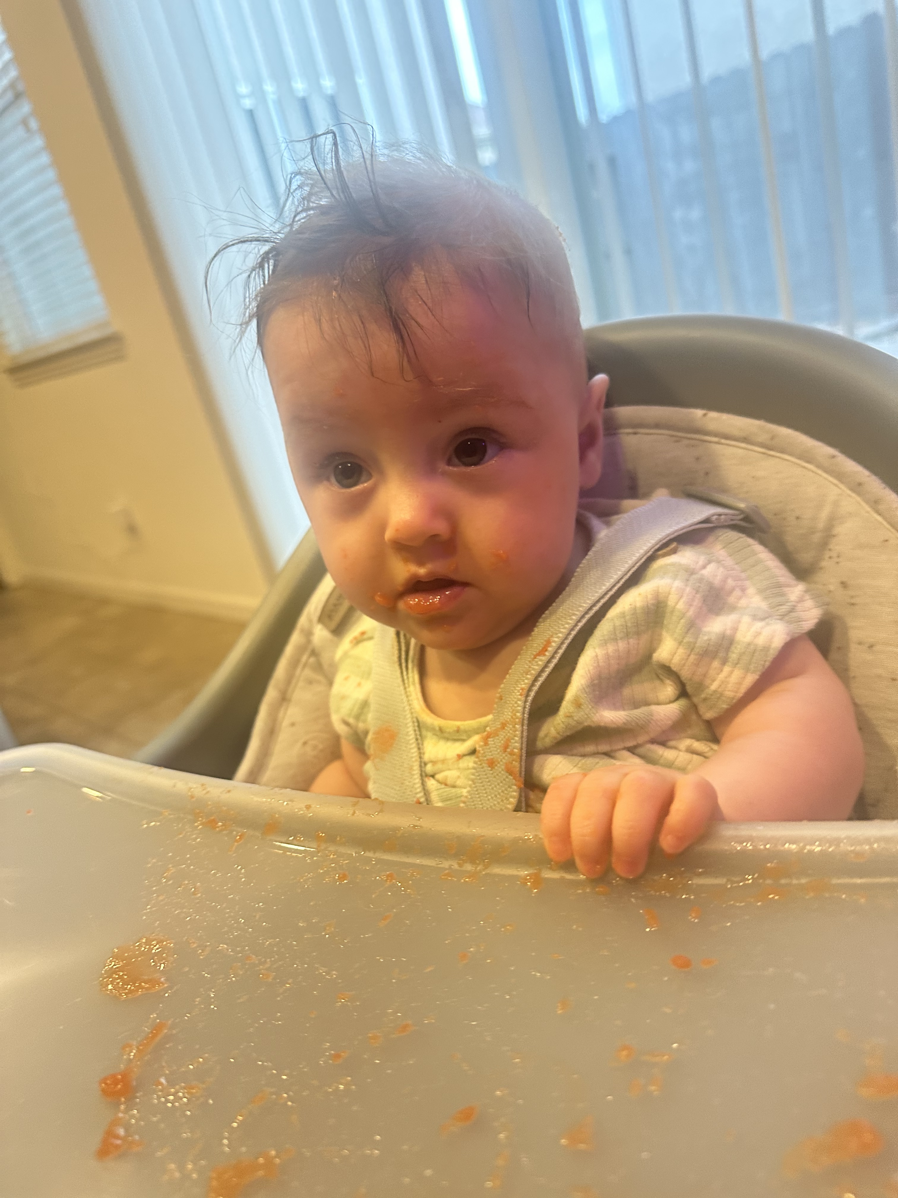 • She holds her head steady when holding her and can sit in her high chair without falling over.